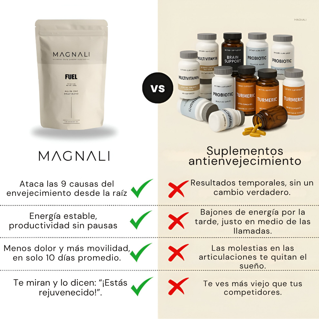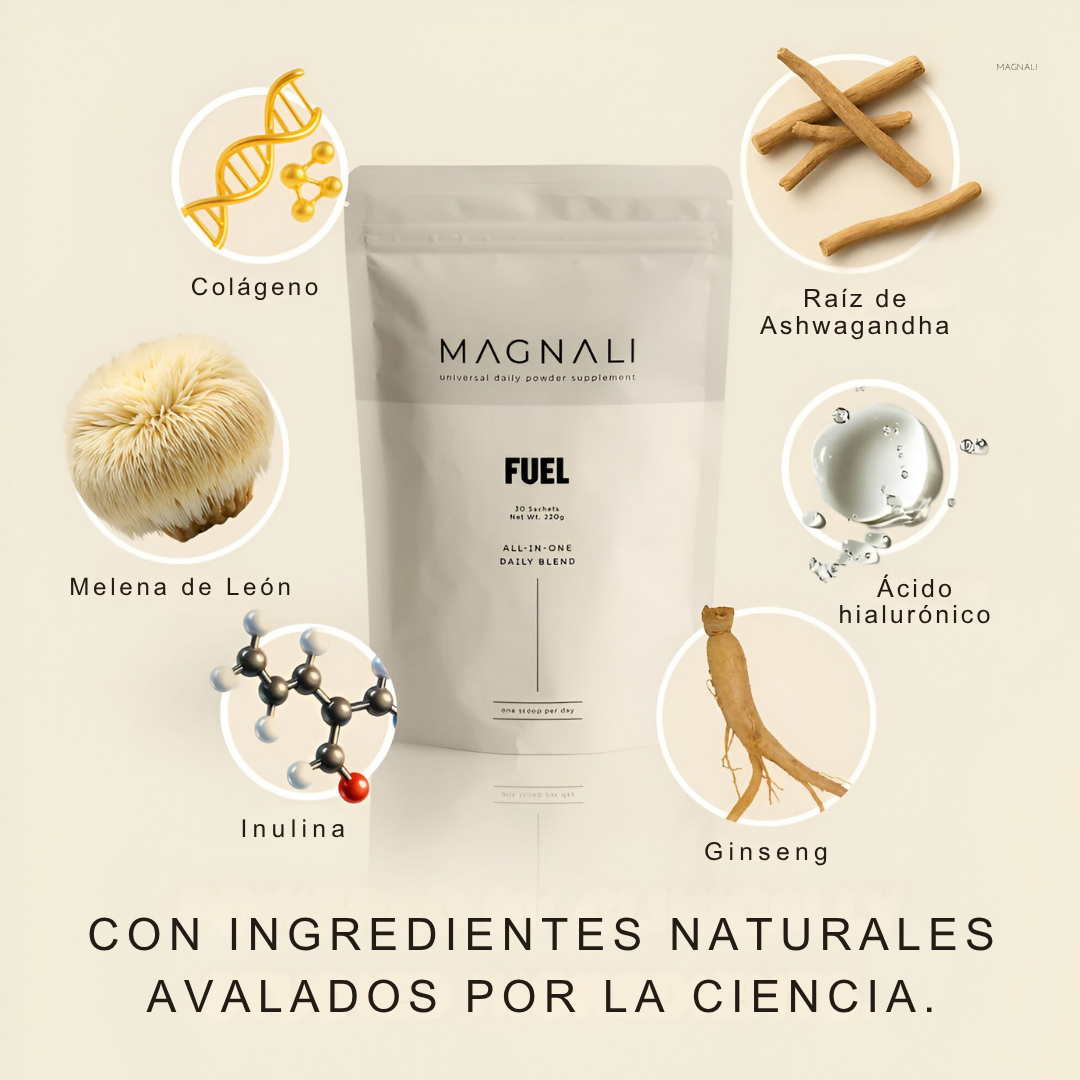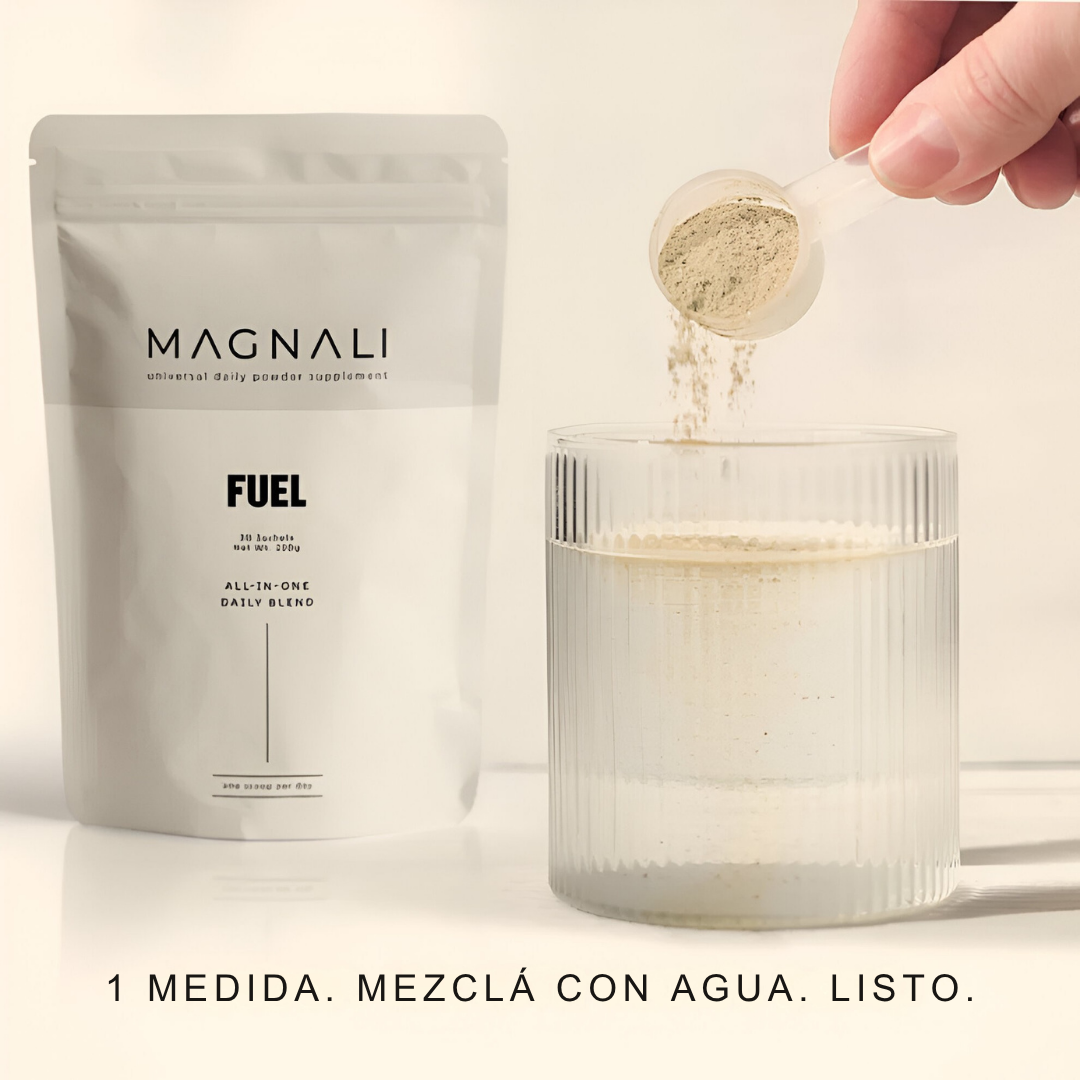 MAGNALI FUEL es la solución: energía sostenida, enfoque nítido y piel más joven — todo en una sola mezcla diaria.