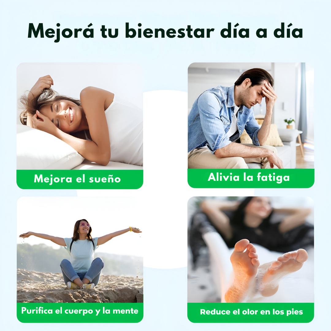 ¿CANSADO/A DE LLEGAR A CASA SIN ENERGIAS Y SENSACIÓN DE PESADEZ? Descubre una solución sencilla que trabaja mientras duermes: parches desintoxicantes nocturnos diseñados para relajar y revitalizar tus energias.